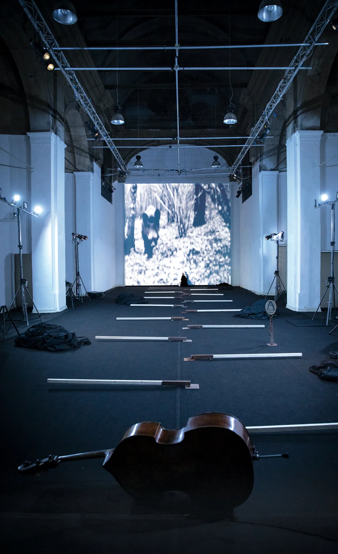 Il mio lavoro come strumento/personaggio si è realizzato nella creazione di un percorso a due voci tra scrittura e improvvisazione che prende vita attraverso la Via Crucis di Ermengarda.