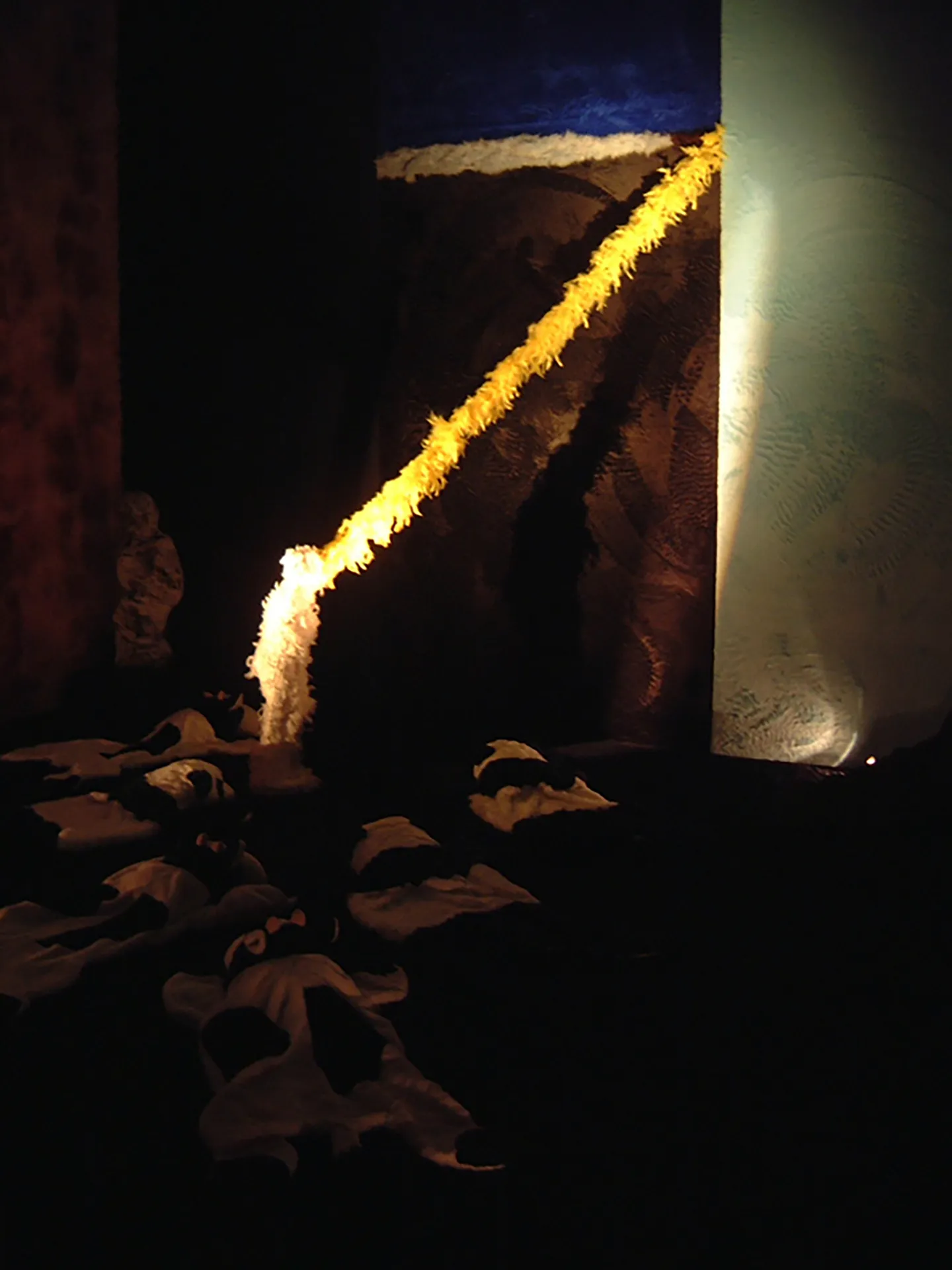 Non un evento meramente visivo, né un formato propriamente teatrale dunque, piuttosto una cornice più ampia che racchiude entrambi, una sorta di azione estetica, una poietica dell’estasi in grado di contenere in sé il corpo dell’attore e quello dello spettatore in un tempo istantaneo e in uno spazio liminare, la soglia che divide l’esistenza dalla sua rappresentazione.