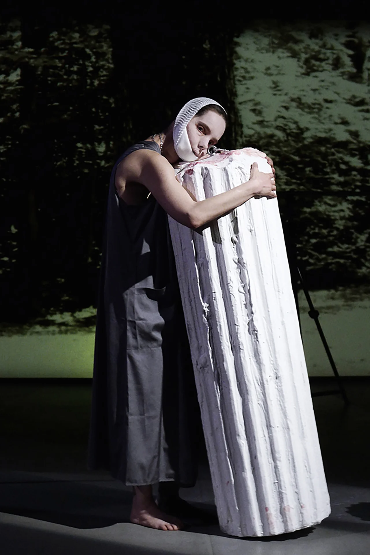 Ad interpretare Iphigenia in Tauride. Io sono muta è Monica Barone, danzatrice dotata di una grande sensibilità performativa maturata nel rapporto con la propria specificità fisica. Nonostante i numerosi interventi chirurgici al volto cui deve sottoporsi fin dalla primissima infanzia, Monica coltiva e pratica con passione i linguaggi della danza contemporanea e la fotografia. Recentemente è interprete di Beatrice nella grande installazione site-specific del Paradiso di Lenz (2017).