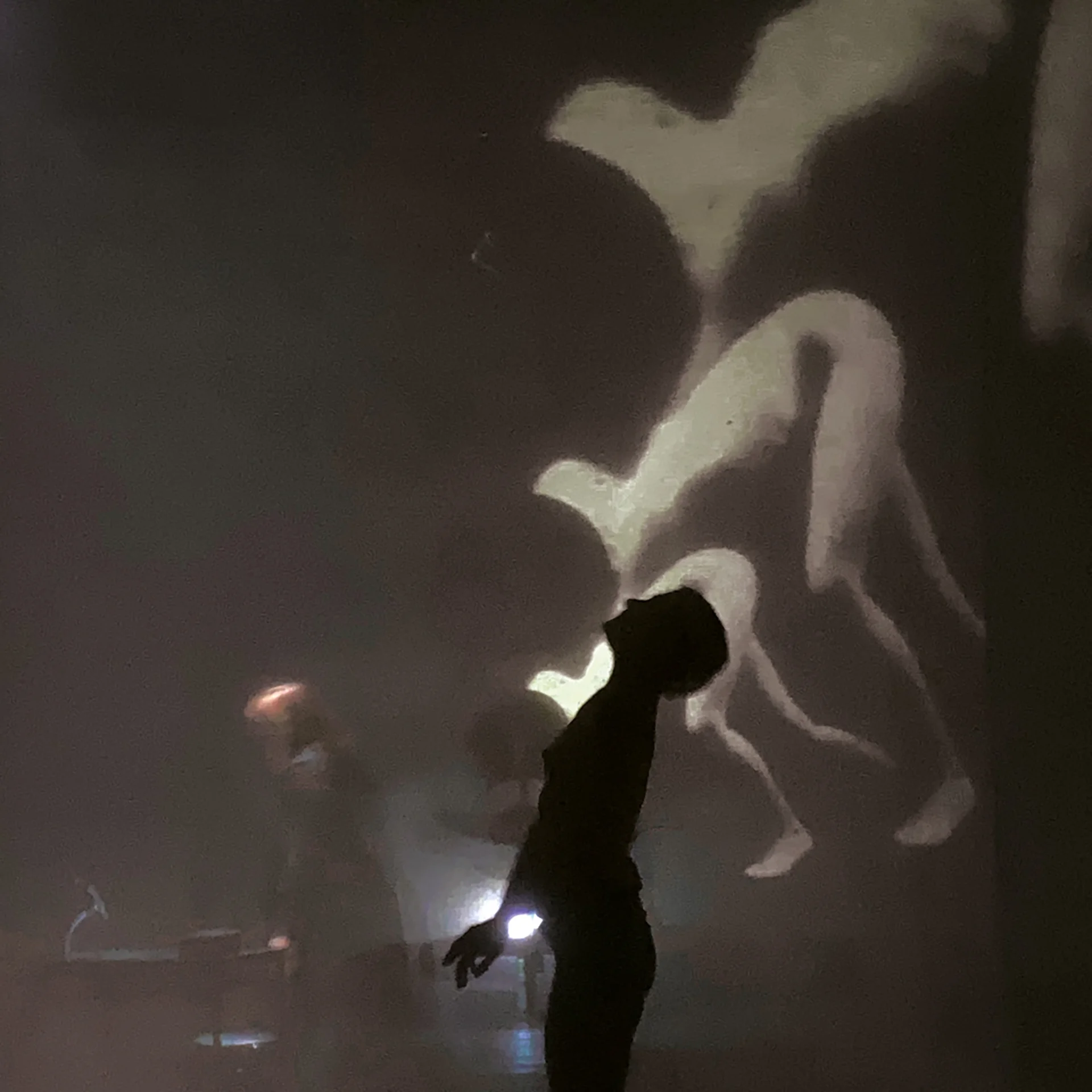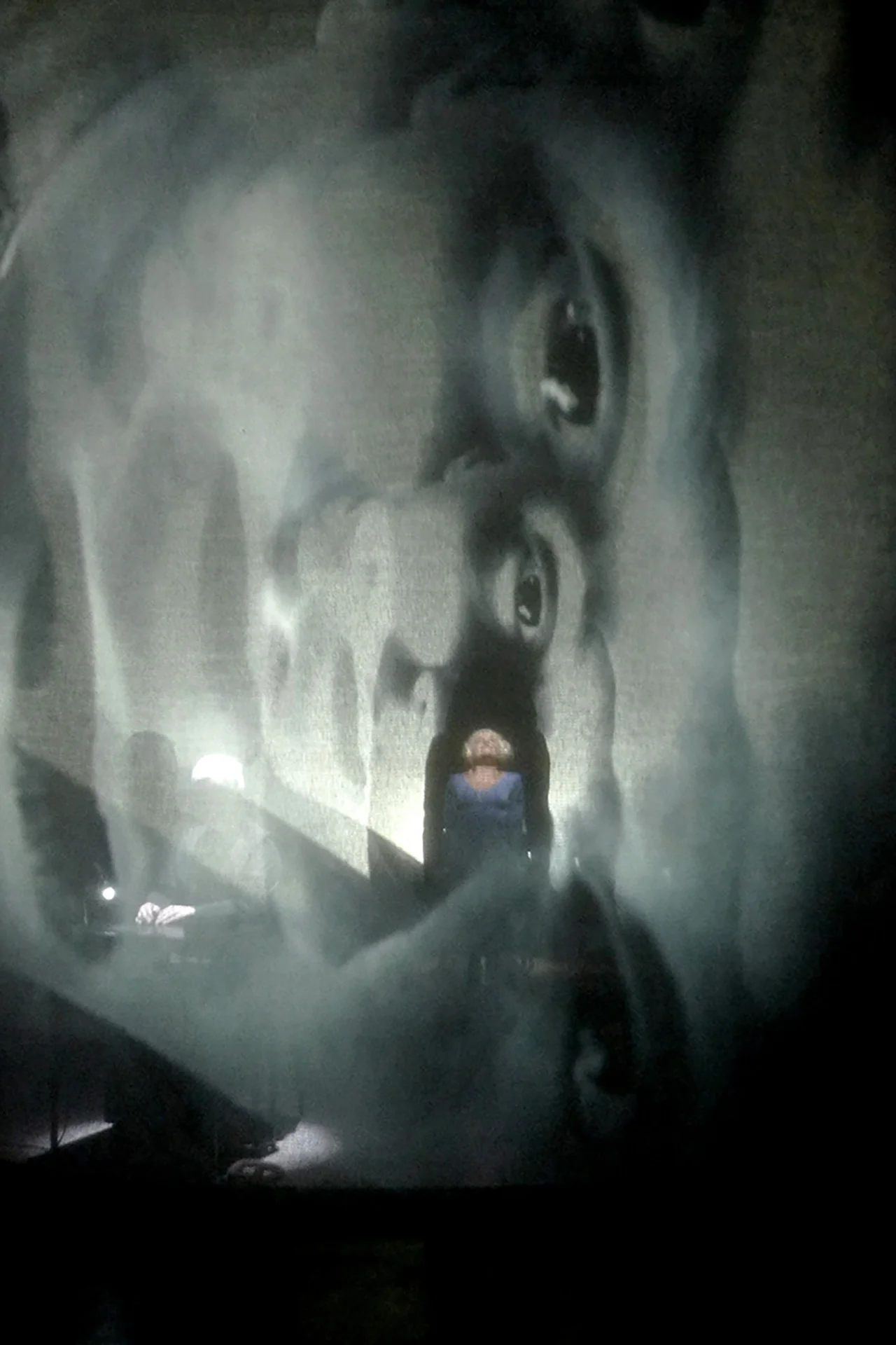 Sono immagini già presenti, già nate, tra il milione di miliardi di sinapsi del cervello, come tra le somiglianti miliardi di galassie e stelle dell’universo, interconnesse e rapide, sovrapposte sequenze sfuocate che ingoiano l’agire dal vivo di canto e parola.