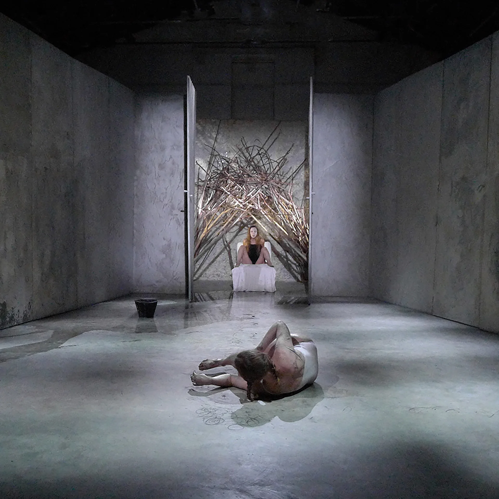Così il testo riscritto diventa un cruciverba tragico, una enigmistica complessa di emozioni e azioni funeste. Non essendoci più le divinità a regolare i ruoli, lo scacchiere, viene a mancare l’elemento fondamentale della follia, della furia irrazionale, del capriccio dionisiaco, della forza titanica. Ecco allora che alcuni protagonisti nuovi, figure tragiche della contemporaneità, intervengono come amazzoni a riportare la hybris necessaria all’umano per ribellarsi ancora. Modificando lo schema indotto dall’opera, questi atomi tragici possono deviare la direzione della loro caduta, lo schema della drammaturgia può perdersi temporaneamente, per poi ritornare e far procedere l’azione nel labirinto della scena. Non può esserci rappresentazione tragica senza la presenza di questi protagonisti, quelli che amiamo chiamare “attori sensibili”, dotati di quella forza espressiva illimitata che permette loro di dire la verità, anche la più cruda. Hanno un respiro senza tempo, vocalità antiaccademica e anti-sperimentale, eco di un altrove del pensiero, postura naturale senza affettazione, gestualità funzionale.