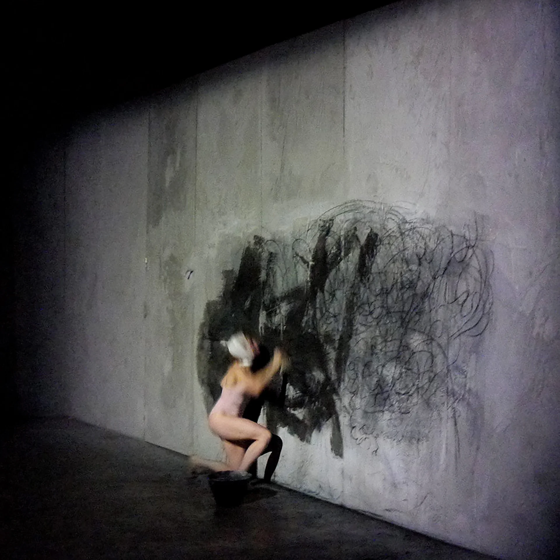 Di grande forza visiva e fisica è anche la sequenza dove sopra un tavolo domestico – luogo di nutrimento di vita e di morte – sarà composto e versato del latte artificiale che, manipolato, da bianco diventerà nero, sporcando volti e mani e lo spazio intorno. L’installazione scenica agìta s’ispira alla Todesfuge del poeta tedesco Paul Celan […] e ai vortici liquidi dell’artista inglese Anish Kapoor.