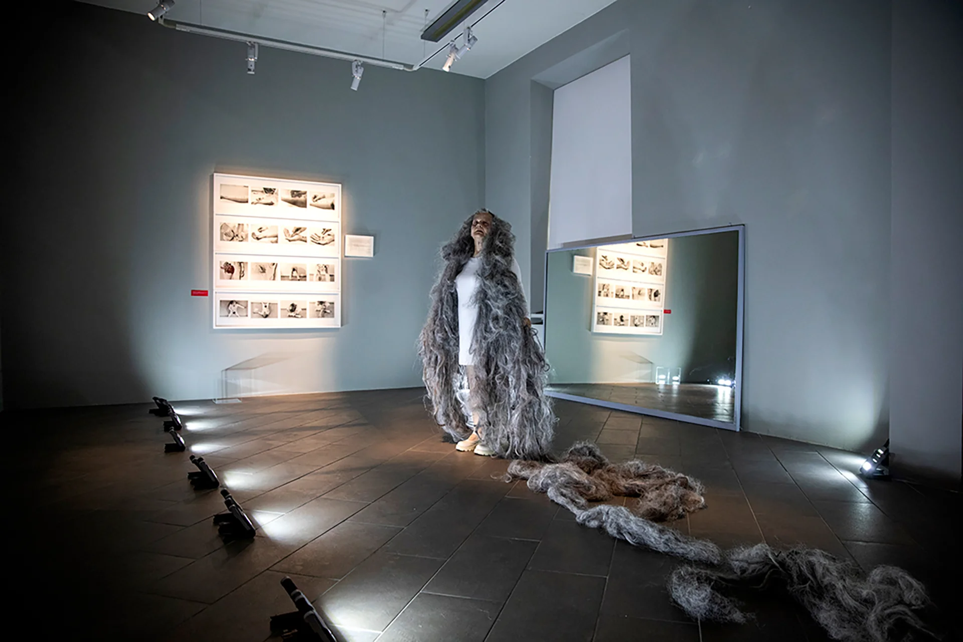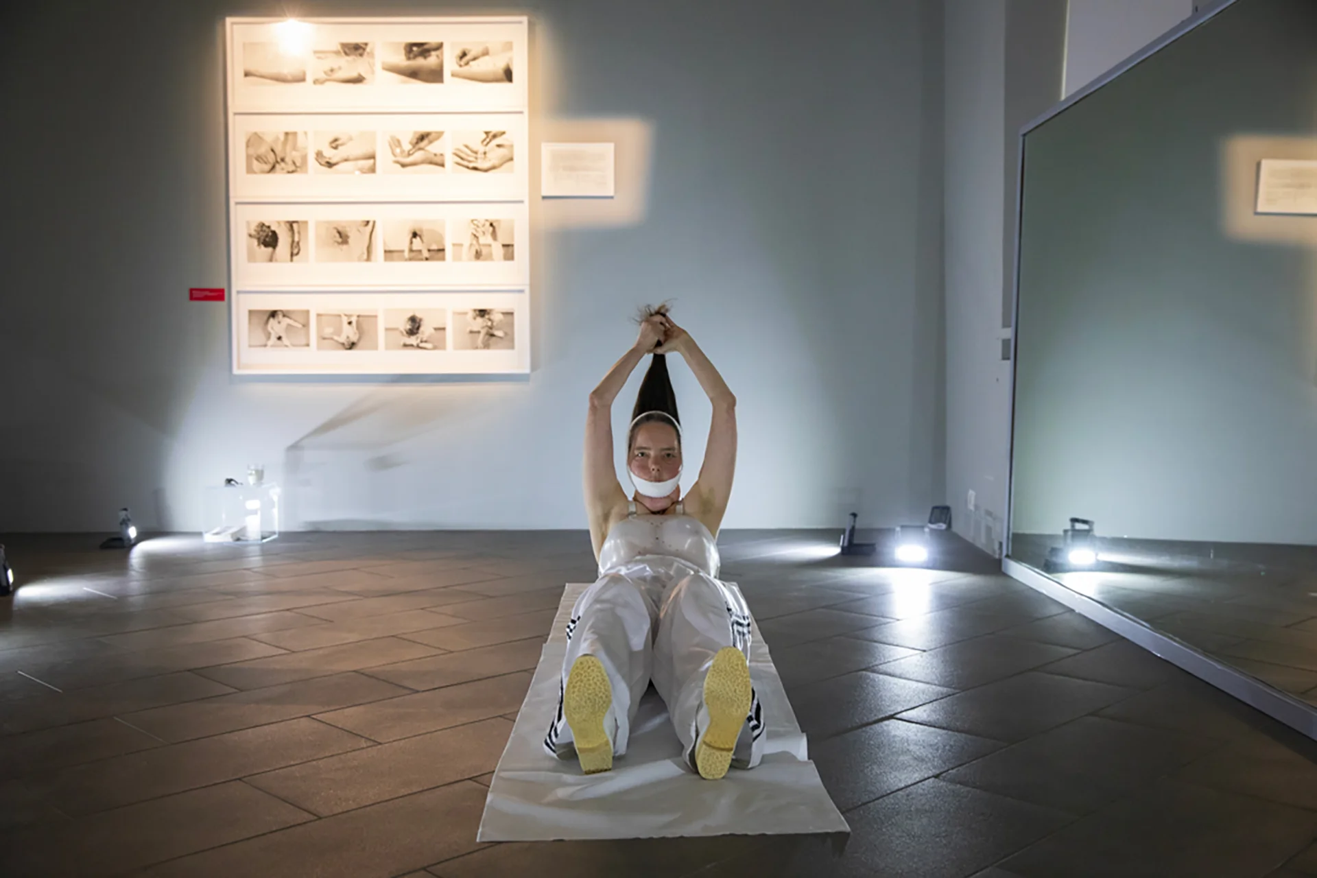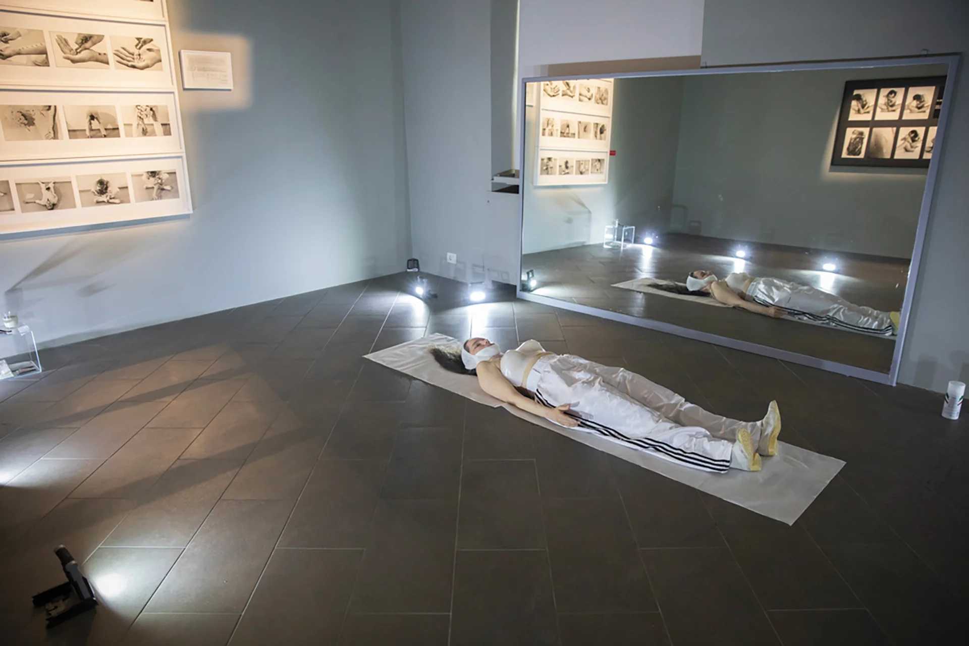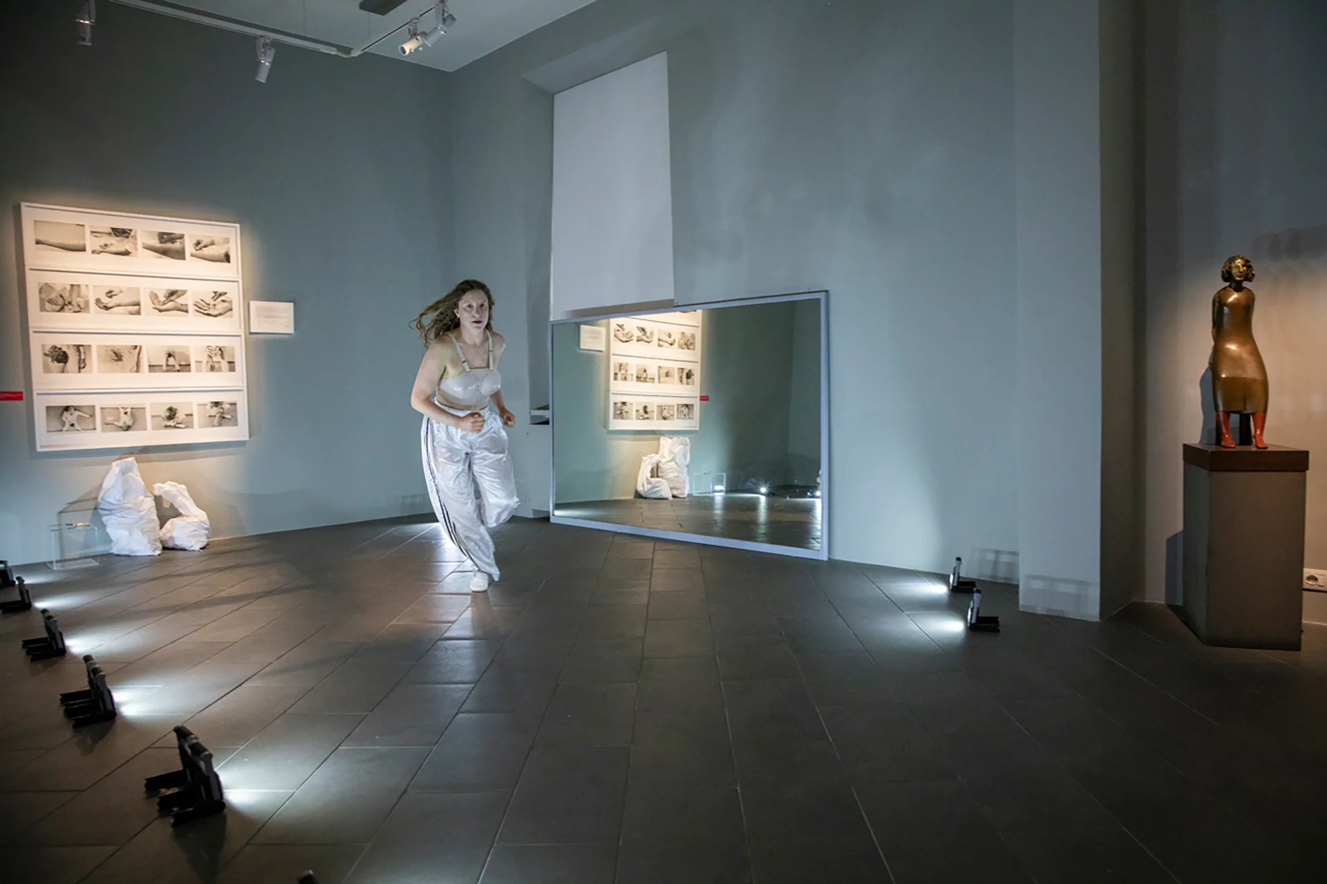 Le quattro performer di Maria Federica in ‘Over Gina Pane_4 Azioni Sentimentali’ hanno agito nello stesso habitat dove erano esposte le Constatazioni di Gina Pane e diventano esse stesse rifrazioni corporee di quella partitura fotografica collocata a parete.