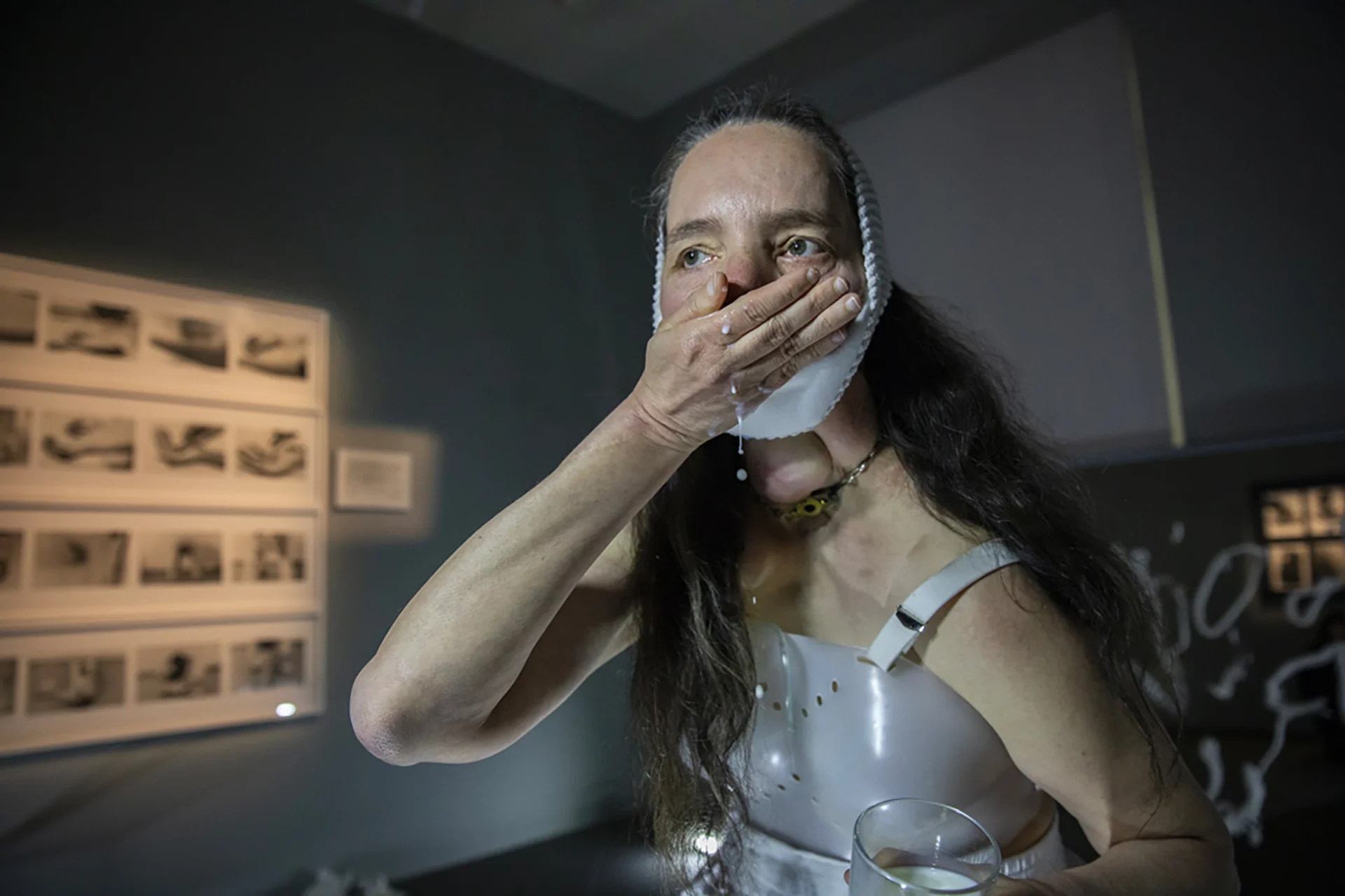 Le performer non presentano solo ferite reali di consistenza autobiografica, ma incarnano la ferita dell’essere umano, che ‘è’ per natura e destino malato e morente. La fuoriuscita del sangue è solo la conseguenza visibile, nitida, evidente della ferita. Ciò che rende la ferita permanente è la cicatrice, il suo rimarginarsi e riaprirsi, il suo diventare traccia ossidata, il suo costituirsi incisione permanente nella memoria psicofisica degli individui.