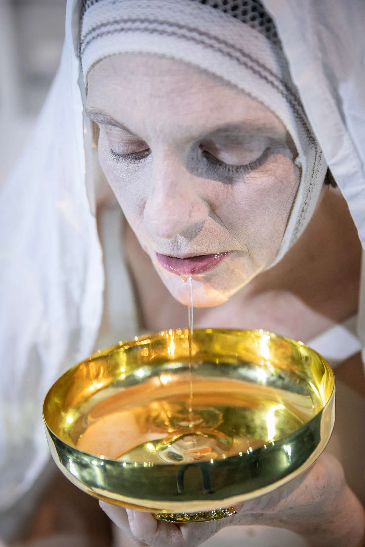La relazione tra chi compie l’azione dal vivo e la potenza simbolica della sequenza fotografica provoca – tramite incarnazione ed empatia – anche una partecipazione corporea dello spettatore, sia alla performance in atto, sia alle biografie delle attrici-autrici che ai temi originari di Gina Pane come l’amore, il dolore, la natura, il donarsi totalmente all’altro, come Cristo.