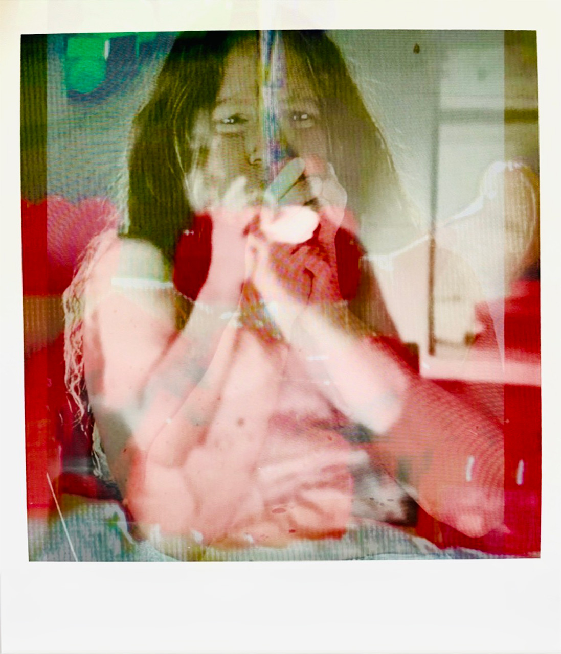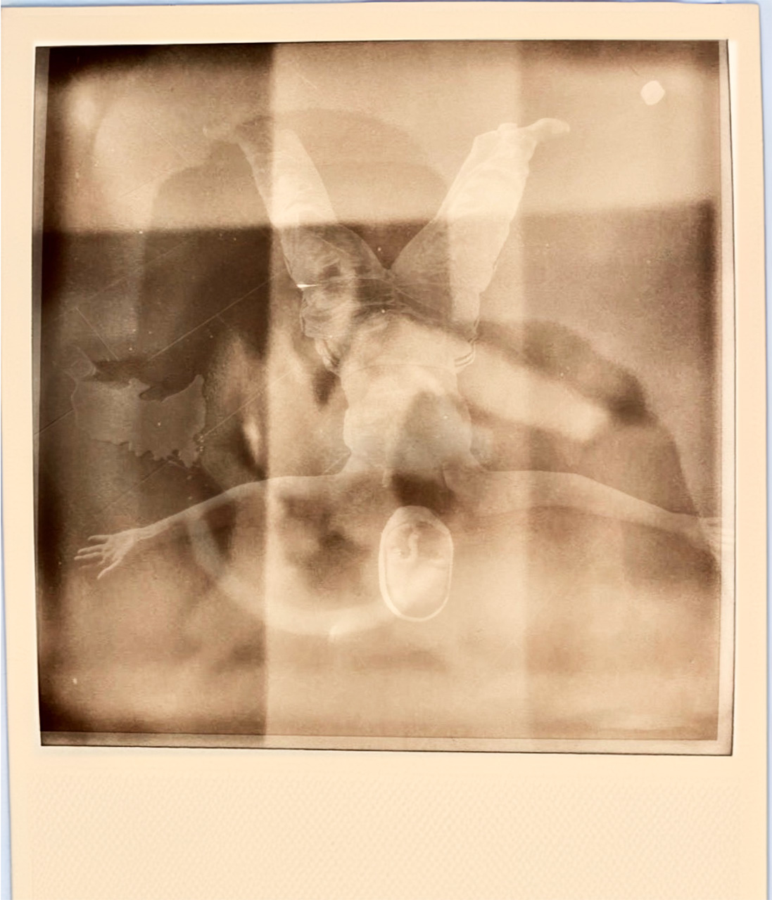 Di nuovo ri-fotografate, anche da schermo, con sovrapposizioni che escono talvolta dal formato quadrato della Polaroid in uno scorrere spazio-temporale che tende all’impossibile abbraccio, come nelle Partitions, tra passato e presente. Poi riposte definitivamente nel quadrato artefatto di una falsa polaroid digitale.