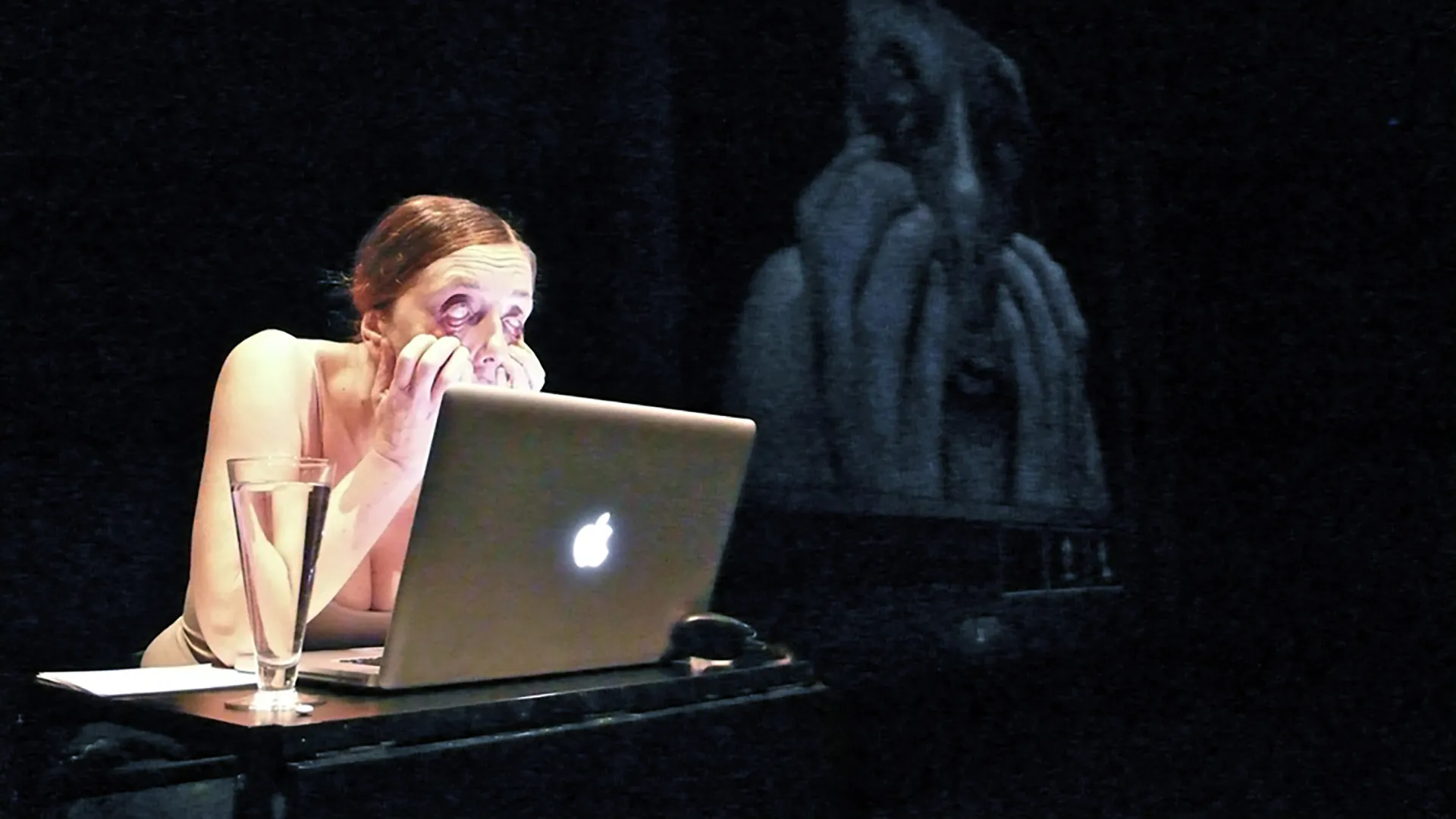 Gli spettacoli, dunque, erano due. Il primo è un monologo, affidato alla ottima Sandra Soncini, che attraversa il mito di Pentesilea nella vertigine compositiva di Kleist. Un monologo inesorabilmente detto di fronte allo schermo del Mac, che moltiplica e ingigantisce il primo piano sul fondo. Pentesilea sola con se stessa, regina disarmata, si martorizza in chat: fino a divorare il proprio mito come un bicchier d’acqua. È un racconto che si fa delirio, ossessione, auto-dialogo di chi disperatamente cerca nel bagliore dello schermo tracce di vita, aiuto, ascolto.