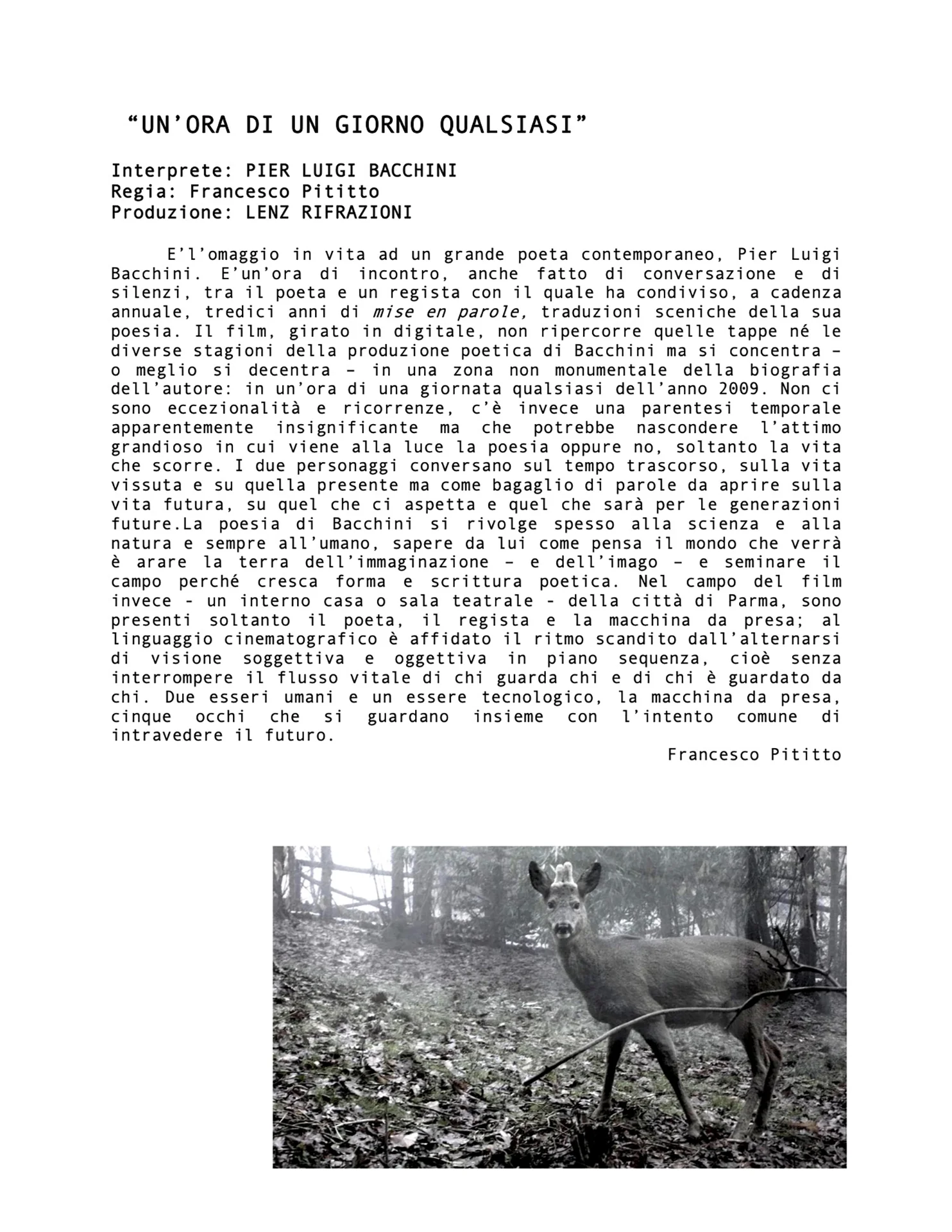 Regia, imagoturgia Francesco Pititto