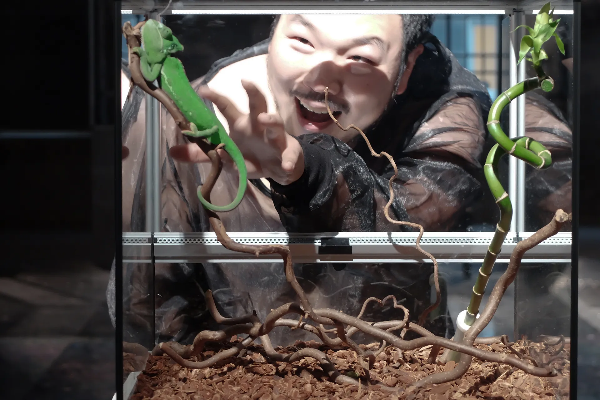 E poi lo cede, come ultima preghiera, alla Lady ormai errante tra i terrari brulicanti.